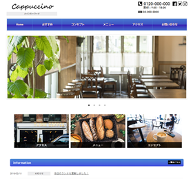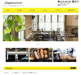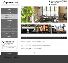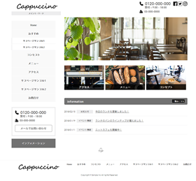 1カラム(1列構成)のレイアウトです 太陽のように温かく、ここちよい空間を。 カフェ Cappuccino 有機野菜など、食材にこだわった、安全でおいしいメニューをご用意しております。 Youtube sample